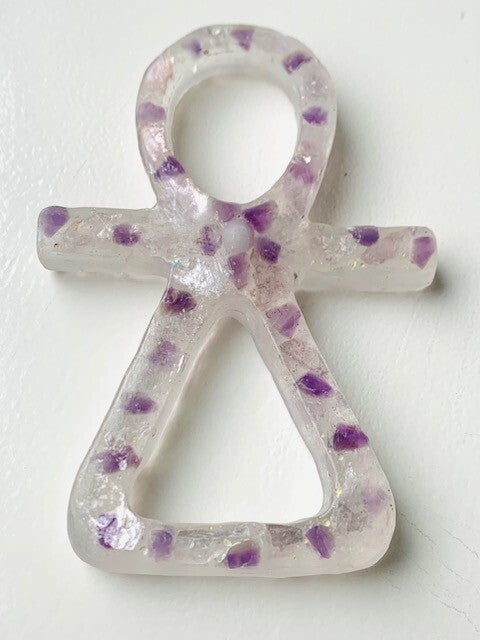 Amethist is een krachtige zuiverende en beschermende spirituele steen met een hoge vibratie die verbonden is met het derde oog, de kruinchakra, de hogere etherische chakra’s en de violette straal van transformatie. Hij verbindt je met je eigen goddelijke oorsprong, stimuleert het denken, de heldere vermogens en de intuïtie. Hij helpt je om diepere inzichten en de oorzaken van levenservaringen te krijgen.