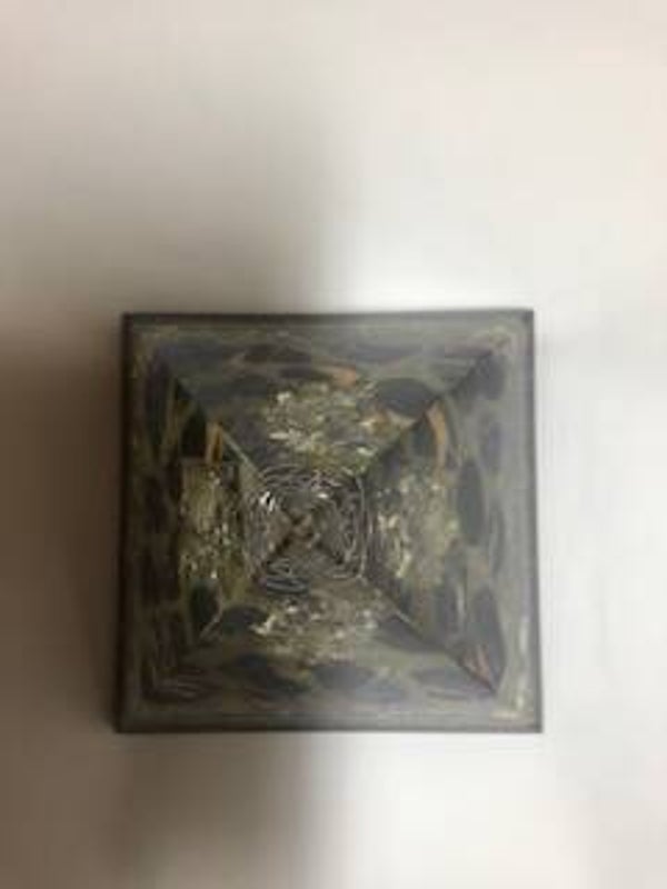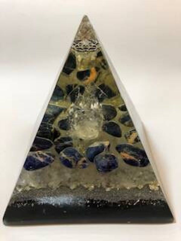 Iedere orgonite piramide is een uniek exemplaar met natuurlijke mineralen, orgonite (Via een alchemistisch recept van Kwartskristallen, Groene toermalijn, Aluminium met Shungite), en een koperspiraal in cubit maat, gegoten in giethars.