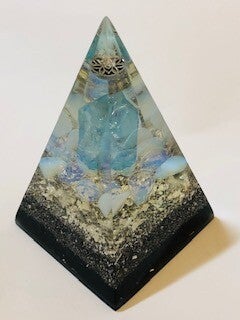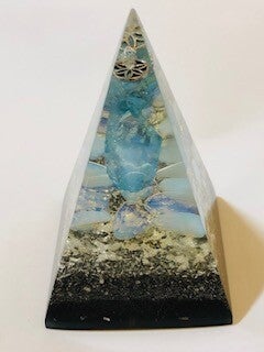 Iedere orgonite piramide is een uniek exemplaar met natuurlijke mineralen, orgonite (Via een alchemistisch recept van Kwartskristallen, Groene toermalijn, Aluminium met Shungite), en een koperspiraal in cubit maat, gegoten in giethars.