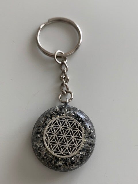 Orgonite Sleutelhanger Levensbloem Fijn Shungite Aluminium