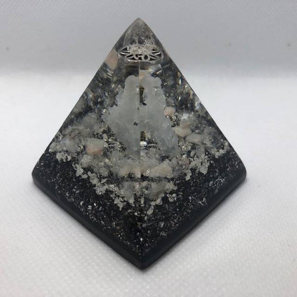 Iedere orgonite piramide is een uniek exemplaar met natuurlijke mineralen, orgonite (Via een alchemistisch recept van Kwartskristallen, Groene toermalijn, Aluminium met Shungite), en een koperspiraal in cubit maat, gegoten in giethars.