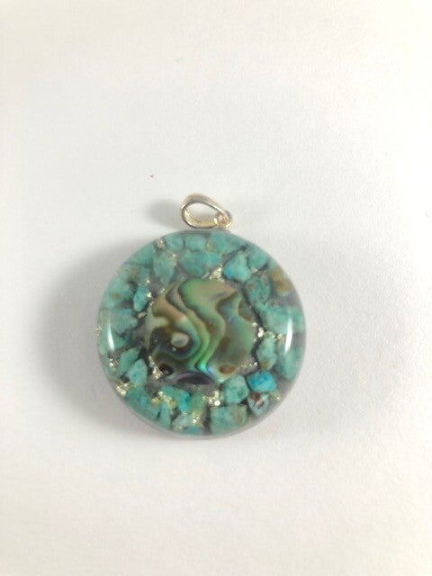Orgonite hanger Small Amazoniet Abalone Bladzilver KL10