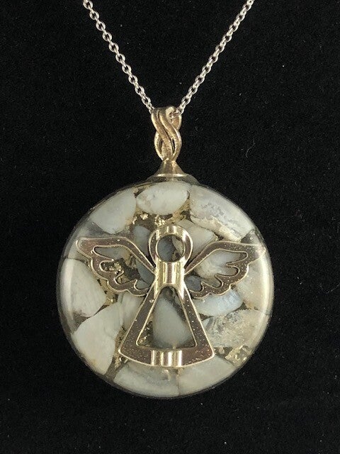 Orgonite hanger Medium Blue Lace Agaat Engel Bladzilver M18