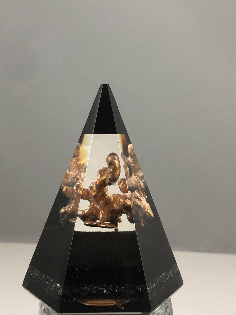 Iedere orgonite piramide is een uniek exemplaar met natuurlijke mineralen, orgonite (Via een alchemistisch recept van Kwartskristallen, Groene toermalijn, Aluminium met Shungite), en een koperspiraal in cubit maat, gegoten in giethars.